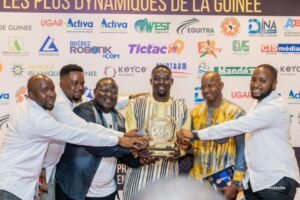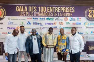 C’est dans une ambiance festive et autour d’un dîner copieux que le gala des cent entreprises les plus dynamiques de la Guinée a eu lieu ce samedi 26 juillet 2025. Cette cérémonie tournante dans les capitales africaines aucours de laquelle l’excellence est magnifiée et célébrée s’est déroulée cette année à Conakry. Cest une initiative du cabinet international Ecofie( éco finances entreprise). On notait la présence de plusieurs chefs d’entreprises et autres invités de marque. Une centaine d’entreprises ont été distinguées Parmi elles, HYPRO SARLU (une société anonyme à retenus limités et unipersonnelle) qui évolue dans les secteurs stratégiques suivants : LES BTP, L’HYDRAULIQUE, L’ÉNERGIE, LES TRANSPORTS, LA LOGISTIQUE ET LA SÉCURITÉ PRIVÉE. Une jeune entreprise qui vu le jour entre 2019-2020 mais de sa résilience et sa force de capacité d’innovation se balise son chemin.