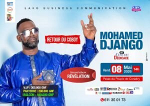 Les rues de Conakry sont désormais parées des banderoles annonçant le concert tant attendu de MOHAMED DJANGO. Intitulé « RÉVÉLATION », cet événement promet d’être une soirée historique, et l’excitation est à son apogée à travers la ville.